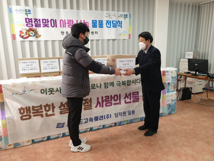 | ▲ 씨월드고속훼리(주) 목포만호동,유달동복지센터 사랑의 선물 전달(출처=씨월드고속훼리(주)) |