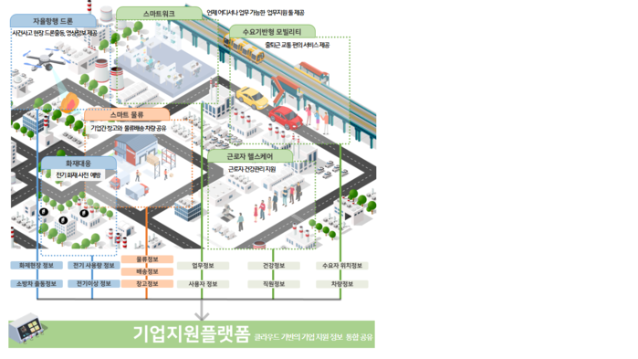 기업지원 플랫폼 | 산단 내 기업 물류, 제품 등의 정보를 통합 공유 | |