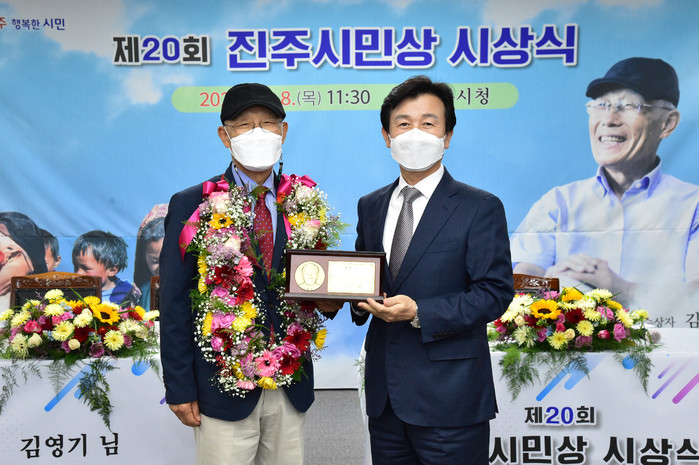 진주시민상 수상자는 경상대학교 행정학과 교수를 역임한 김영기(76세)씨로, 현재 경상대학교 행정학과 명예교수, 진주포럼 상임대표, 경남자치연구원장 등으로 활동하고 있다.