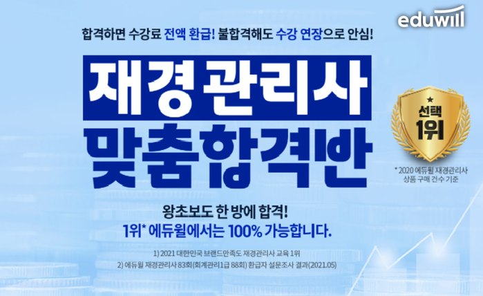 [시민일보 = 여영준 기자] 종합교육기업 에듀윌(대표 박명규) 재경관리사는 '재경관리사 맞춤합격반'의 수강료 환급 및 수강연장을 진행한다고 밝혔다.