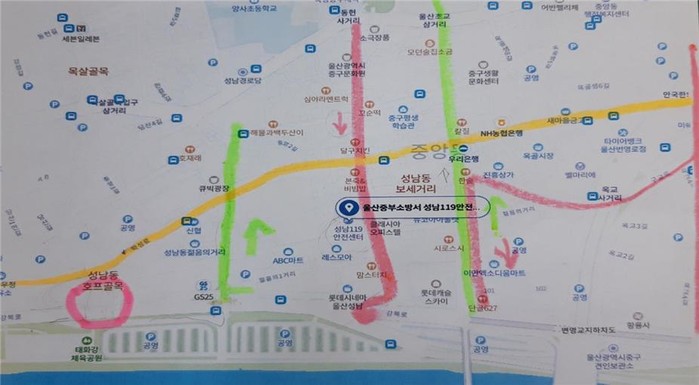 주민들은 “최근 대단위 아파트, 고층건물 건립, 재개발 등으로 성남동 일대 교통체증이 가중되고 있지만 구 시가지에서 강변으로 빠져갈 수 있는 차선이 부족하다”며 “특히 구 중부소방서 일대는 출퇴근 시간대에 극심한 정체를 빚어 대책이 시급하다”고 말했다. 이에 따라 강북로에 나들문(통로박스) 신설 등을 건의하고 울산시의회가 적극적으로 나서줄 것을 요청했다.