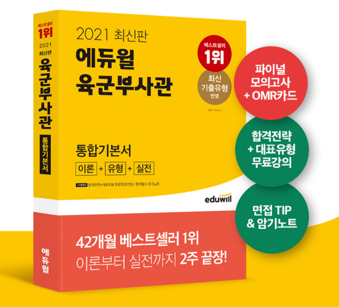 에듀윌의 육군·공군부사관 통합기본서 교재와 ROTC 학사장교 교재는 에듀윌 도서몰, 교보문고, 알라딘, 인터파크 도서 등 온오프라인 서점에서 만나볼 수 있다.