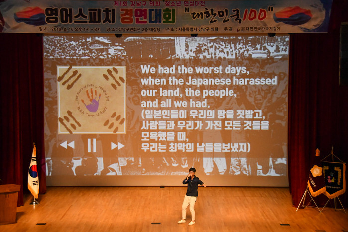 이날 행서에서는 초·중·고 부문별 예선을 통과한 최종 21명(팀)이 대한독립을 주제로 2~3분 분량의 영어 스피치를 펼쳤으며, 대상은 3·1운동부터 현재까지 아픈 역사에 대한 저항의식을 랩으로 표현한 장주원(인천남동고 2학년) 학생이 수상의 영예를 안았다.