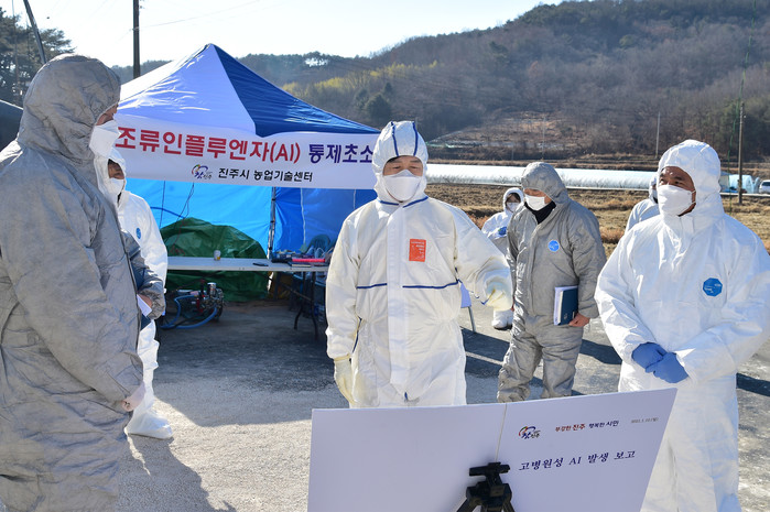 진주시는 지난 8일 관내 육용오리 농장에서 고병원성 조류인플루엔자(AI)가 발생 됨에 따라 전파방지를 위해 통제초소를 설치하고 공무원 등 80여 명을 동원하여 긴급 살처분 후 렌더링(고열처리 후 퇴비화) 처리했다고 밝혔다.