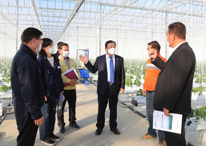 조근제 함안군수는 지난해 12월 농림 축산 식품 부 공모사업에 선정되어 금년 10월 준공된 수출전문 스마트팜 온실 신축사업장을 방문하여 시설현황을 살펴보고 관계자들을 격려했다.