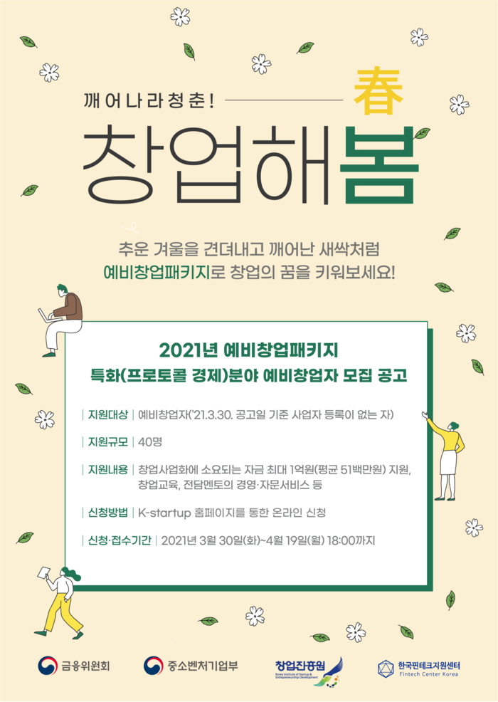 - 혁신적인 기술창업 소재가 있는 프로토콜 경제·핀테크 분야 예비창업자 모집 총 40명 내외 선발, 최대 1억원 지원