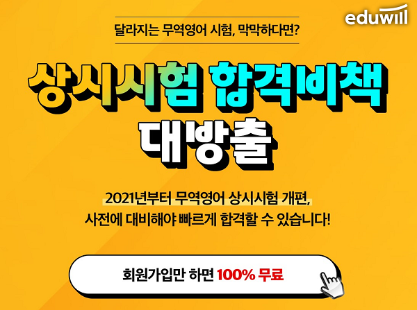 [시민일보 = 여영준 기자] 종합교육기업 에듀윌(대표 박명규) 무역영어가 2021년부터 개편되는 무역영어 상시 시험에 대비할 수 있도록 ‘상시 시험 합격 비책’ 특강을 진행한다고 밝혔다.