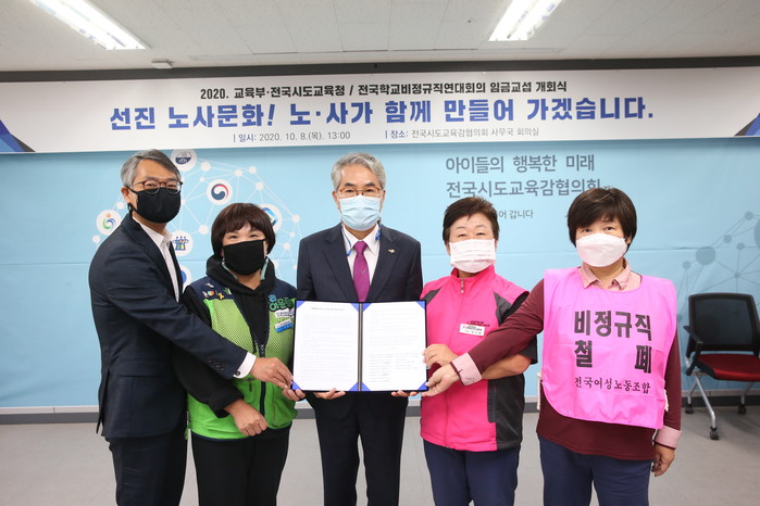 교육부 및 17개 시도교육청과 전국학교비정규직연대회의는 지난 8일 전국시도교육감협의회 사무국에서 “2020년 집단(임금)교섭 개회식”을 개최하였다.