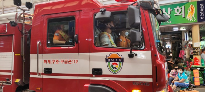 합천소방서(서장 김진옥)는 지난 23일 합천읍 합천리 소재 합천시장 등 전통시장 6개소에서 국민 참여 소방차 동승체험ㆍ출동로 확보 훈련을 실시했다고 밝혔다.