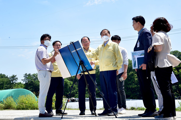 정준석 진주 부시장이 지난 23일 최근 편의시설 부족 등으로 민원이 증가하고 있는 ‘남강 와룡지구 친수 생태공간’을 방문하여 직접 현장점검을 실시했다.