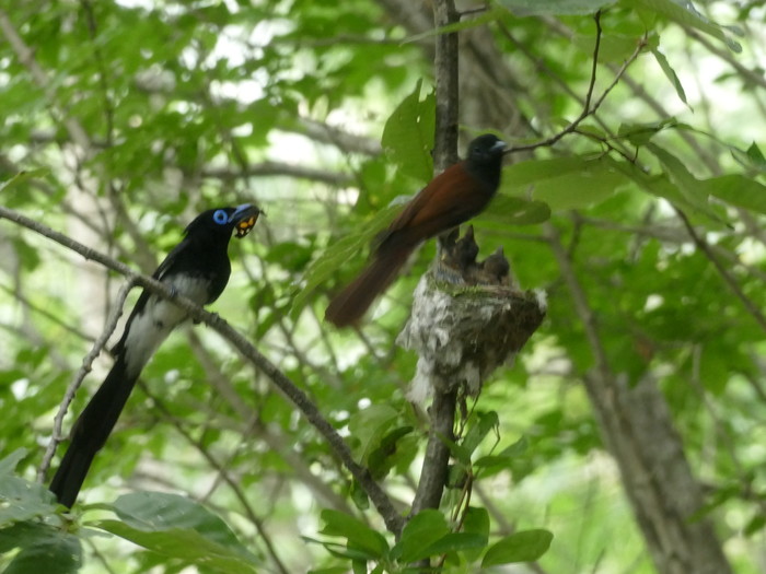 이내 암컷 어미 새가 여러 차례 먹이를 물고 왔으며 가끔 수컷도 먹이를 물고와 새끼들에게 빠르게 먹이고 둥지를 떠나는 장면도 확인됐다.