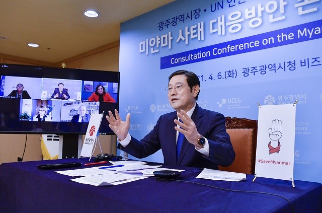 [광주=정찬남 기자] 광주광역시와 유엔 인권최고대표사무소, 세계지방정부연합(UCLG)은 6일 오후 화상회의를 갖고 미얀마 군부 쿠데타 반대와 민주화운동 지지, 미얀마 국민 인권보호를 촉구하는 세계지방정부연합(UCLG) 차원의 공동 성명서를 발표하기로 합의했다.