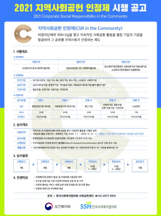 | ▲2021 지역사회공헌 인정제 시행 공고 이미지 (사진=한국사회복지협의회) |
