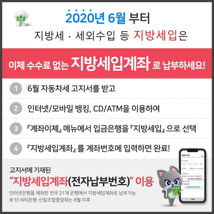 현재 ‘가상계좌(농협)서비스’ 에서 발생하는 타행이체시 수수료 발생문제를 해결함으로써 납세자에게 가장 익숙한 계좌이체 서비스의 확대를 통해 납세편의를 제고 할 것으로 기대하고 있다.