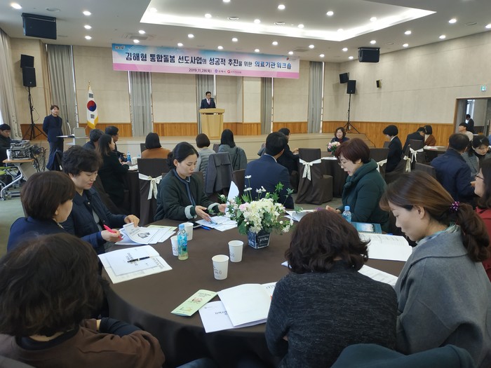 김해시는 지난 28일 김해중소기업비즈니스센터에서 지역사회 통합돌봄(커뮤니티케어) 선도사업의 연계사업인 방문의료서비스 수행 의료기관 관계자 등 120명이 참여한 가운데 워크숍을 개최했다.