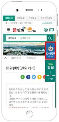 김해시는 홈페이지 이용자에게 좀 더 친숙하게 다가가고 정보 검색을 쉽고 간편하게 제공해주기 위해 대화형 인터페이스 기반인 ‘챗봇’(공식명칭 : 김해톡톡) 서비스를 7월 6일부터 시범 운영한다고 밝혔다.