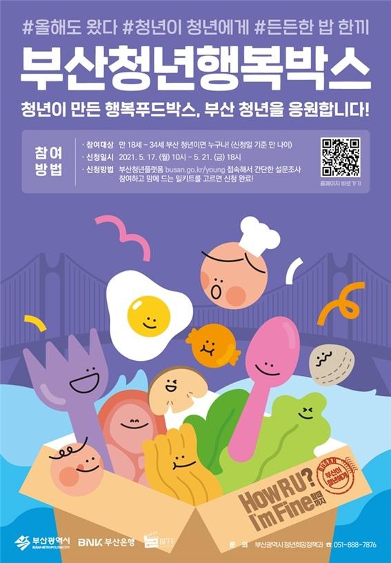 올해 행복박스는 지역 청년 외식사업가 8명이 참여 제작한 밀키트, 부산경제진흥원 선정 지역 스페셜티 커피와 청년정책 홍보물로 구성하여 코로나19로 지친 청년에게 따뜻한 한 끼의 행복을 전달하는 프로젝트로 준비했다.