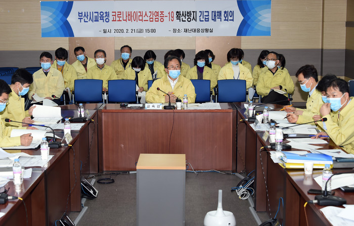 이날 부산시교육청은 부산지역에서 확진자가 발생할 경우 어떻게 대응해 나갈 것인지 등 부서별 세부 조치사항을 비롯한 감염증 예방 관리 대응체계를 점검하고, 감염증 확산 방지에 총력을 다하기로 했다.