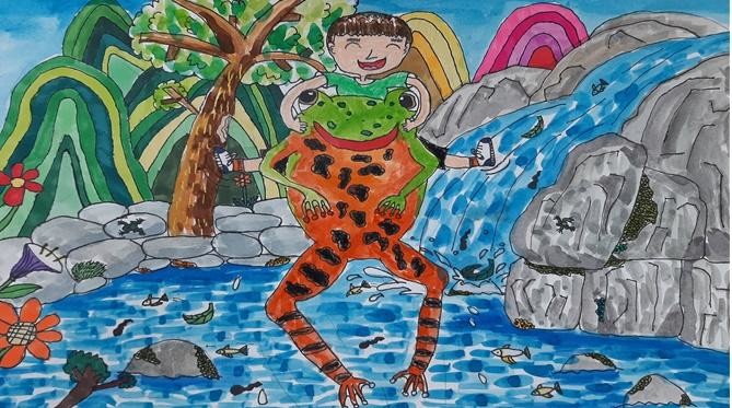 ▲ 초등학생 그림공전 수상작 내원사 계곡의 무당개구리. (사진제공=양산시청) |
