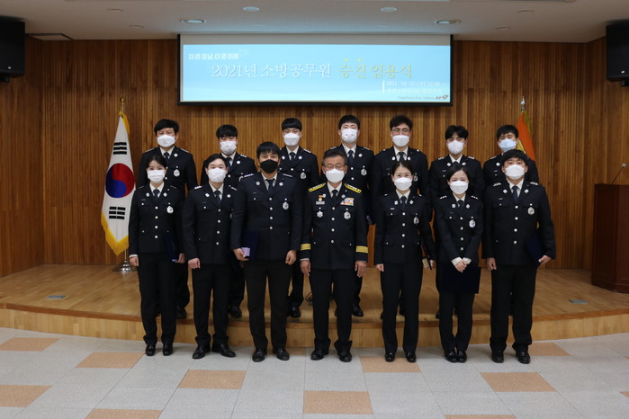 김진옥 소방서장은“지금 이 순간부터는 이전과는 다른 어깨의 무게와 책임을 생각하고 본인 임무를 충실히 수행하길 바란다”고 당부했다.