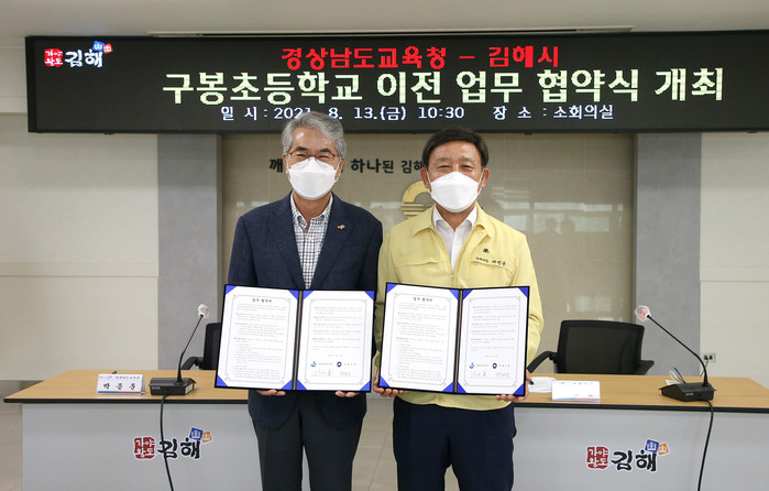 김해시와 경상남도교육청이 13일 시청 소회의실에서 구봉초등학교 이전 업무협약을 체결했다.