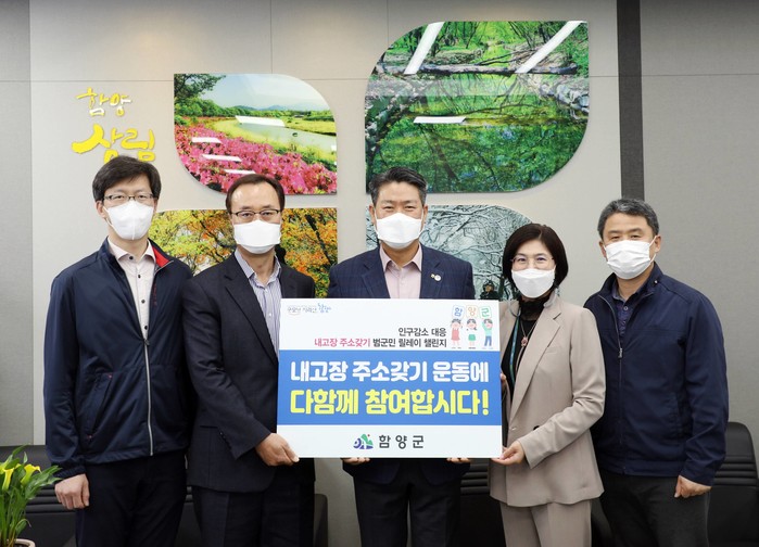 한편, 군에서는 '내고장주소갖기' 범군민 릴레이 챌린지를 지속적으로 추진해 3주차에 돌입한 가운데 농협은행, 함양교육지원청, 함양우체국, 한국전력 함양지사가 챌린지에 참여했으며, 오는 3일 4주차 릴레이 챌린지가 시작될 예정이다.