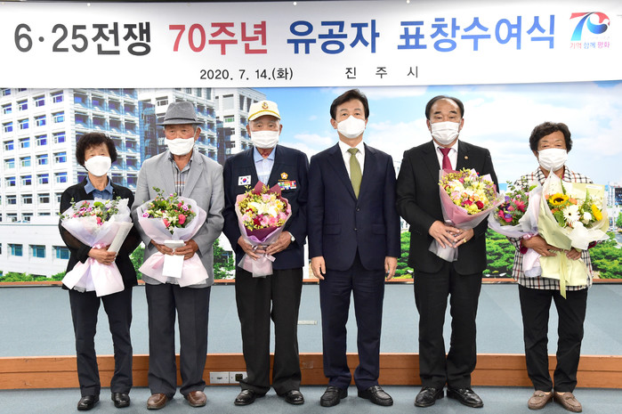 조규일 진주시장은 인사말을 통해 “올해는 6.25전쟁이 일어난 지 70주년이 되는 해임에도 코로나19로 인해 기념행사를 개최하지 못해 안타깝고 송구스럽다”며 “이렇게나마 그 노고에 보답하는 마음으로 표창을 드릴 수 있어 다행으로 생각한다”고 밝혔다.