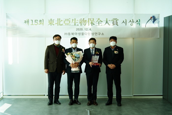 | ▲ 동북아생물보전대상을 수상하고 기념촬영을 하고 있다. |