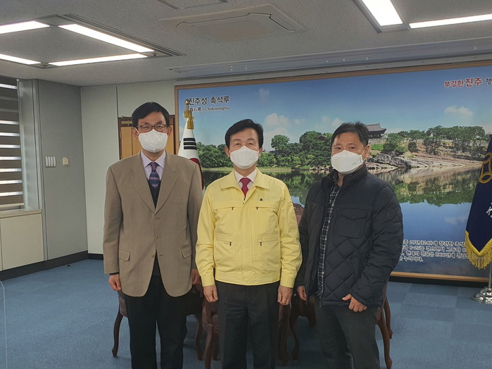 | ▲ 왼쪽부터 장상훈 관장, 조규일 진주시장, 강원표 학예연구실장 |
