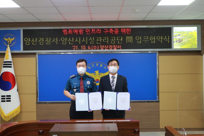 양산경찰서(서장 정성학)는, 지난 6일 양산시시설관리공단과 범죄예방 인프라 구축을 위해 업무협약을 체결했다고 밝혔다.