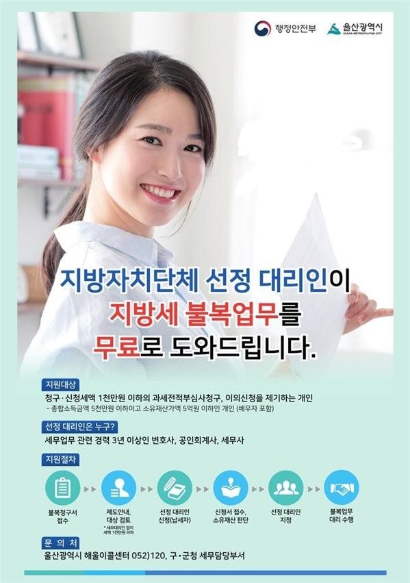 울주군은 지방세 처분에 불복이 있는 경우 세무사 등 법률전문가가 무료로 법률 검토와 자문 등 불복 업무를 도와주는 선정대리인 제도를 운행한다고 1일 밝혔다.