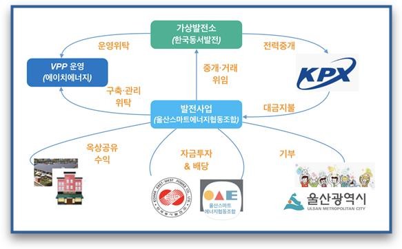 조합원 모집과 홍보는 울산스마트에너지협동조합에서 맡고 발전시설 구축과 관리 운영은 ㈜에이치에너지, 전력 중개‧거래는 한국동서발전이 각각 담당한다.