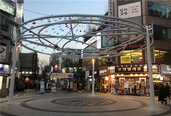 국민은행 앞 젊음의 거리 초입을 알려주는 지주형 사인몰을 시작으로 야간에 빛으로 젊음의 거리를 알리는 인포빔, 샵광장의 만국기를 형상화한 파고라형 조형물, 2차선 도로로 단절된 거리를 이어주는 지주형 사인몰, 스타광장 공연 개최 시 무대의 배경으로 활용 가능한 미디어월 뿐만 아니라 젊음의 아름다움을 간직할 수 있는 육각미러형 셀카포토존 및 액자프레임 포토존까지 젊음을 상징화한 각종 조형물들이 골목을 가득 채우고 있다.