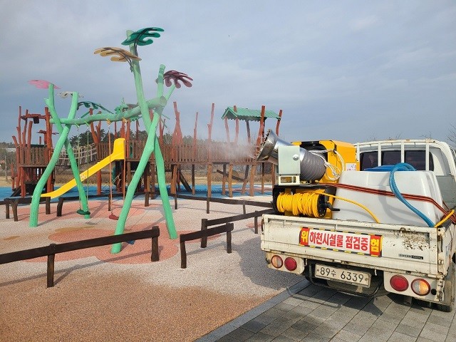 | ▲ 광주환경공단, 승천보캠핑장 방역 / 사진=광주환경공단 제공 |