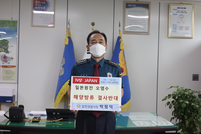 합천경찰서는 8월 12일 박정덕 서장이 일본 정부의 후쿠시마 원전 오염수 해양방류 결정을 규탄하고 철회를 촉구하는 릴레이 챌린지에 동참했다고 밝혔다.