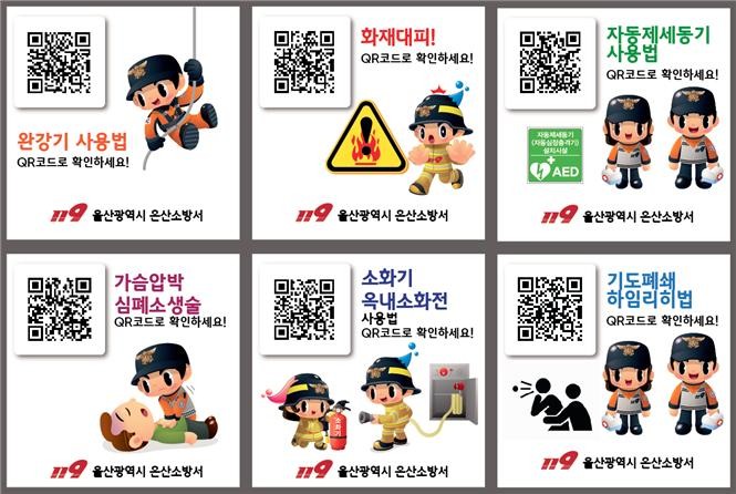 사용 방법은 스마트폰으로 스티커의 큐알(QR)코드를 스캔하면 울산소방본부 ‘영상자료실’에 게시되어있는 소방안전교육 동영상이 재생된다.