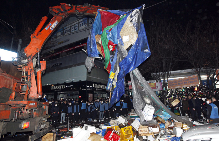 [시민일보 = 여영준 기자]서울 동작구(구청장 이창우)가 21일 오전 노량진역 불법노점 총 20개 동에 대한 행정대집행을 실시했다.
