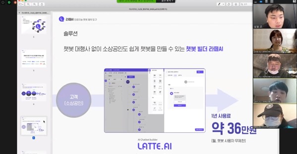 코로나19 확산 방지를 위해 온라인으로 진행된 이번 창업 메이커톤은 생방송 스트리밍 서비스를 활용하여 화상회의로 팀빌딩 및 아이디어를 공유했다.