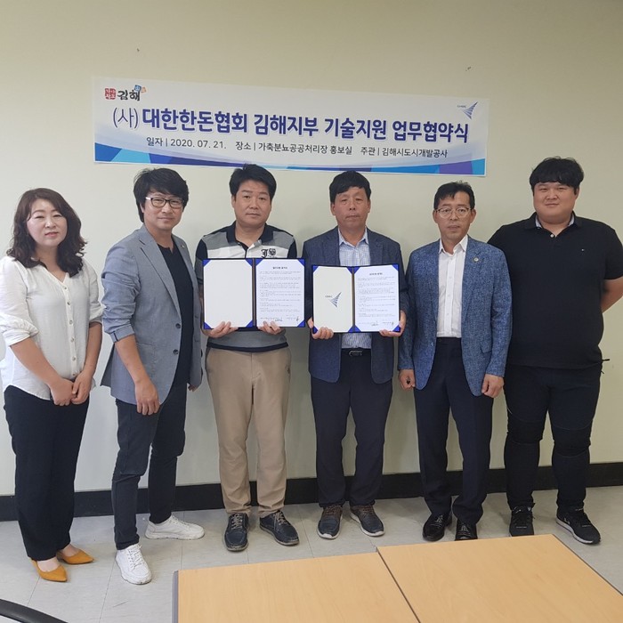 이번 업무지원 협약 체결은 김해시 관내 양돈농가 사육되는 18만두에서 발생하는 분뇨 악취에 대한 관련법 강화와 동물성 전염병으로 가축사육에 어려운 실정을 조금이나마 해소해주기 위해 마련됐다.