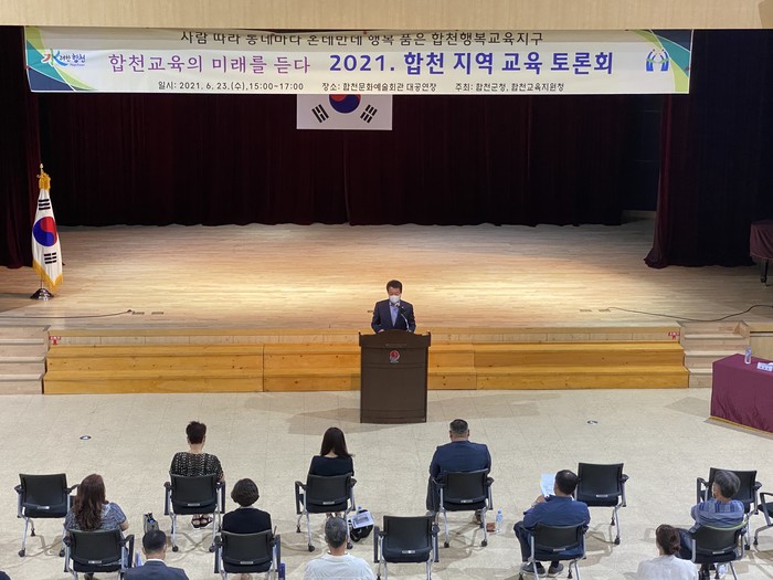 [합천=이영수 기자]합천교육지원청(교육장 정종화)은 지난 23일 오후 합천군문화예술회관 대공연장에서 '온데만데 합천행복교육! 교육공동체가 함께 묻고 답하다'라는 주제로 '합천 지역 교육 토론회'를 열어 교육공동체가 소통하고 공감하는 자리를 마련했다.