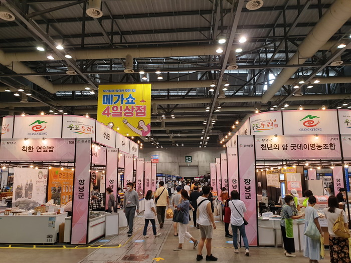 6월 18일부터 21까지 4일간 일산 킨텍스에서 진행된 메가쇼 2020 시즌1 행사에 창녕군 19개 농식품가공업체가 참가하여 관내 농특산물 홍보 및 소비촉진에 기여했고, 향후 제6회 대한민국 대표특산물 박람회, 우포누리 홍보 푸드마켓 등을 운영하여 코로나19로 인해 침체된 지역경제를 살리고자 한다.