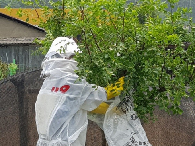 | ▲ 해남소방서, 벌집 제거 모습 / 사진=해남소방서 제공 |