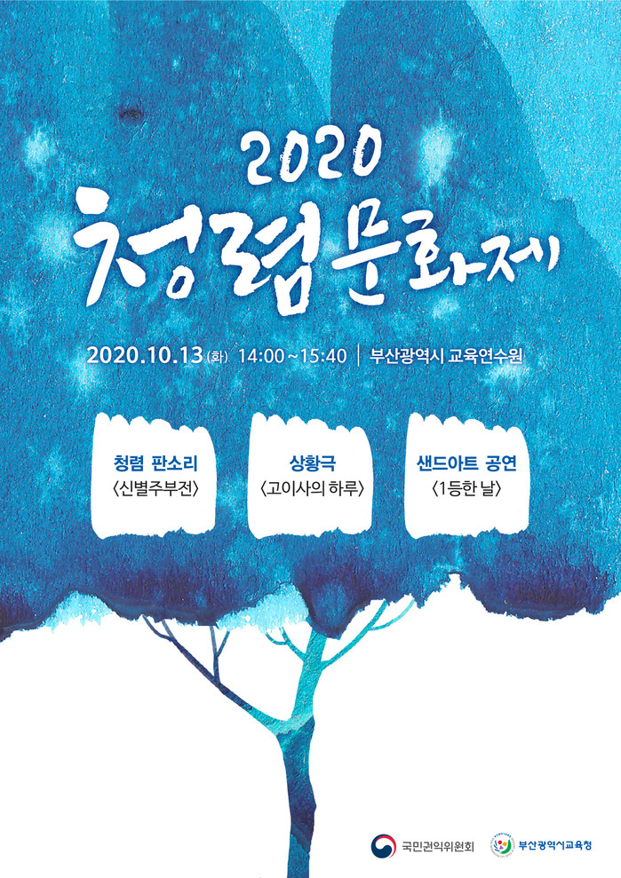 이일권 감사관은 “이번 행사는 코로나19로 인한 어려운 여건에서도 부산교육의 중단없는 청렴실천 결의를 다지기 위한 것이다”며 “앞으로도 청렴문화제를 문화·예술·청렴을 한데 아울러서 교육가족들이 재미있게 즐길 수 있는 축제의 장으로 만들어 가겠다”라고 전했다.