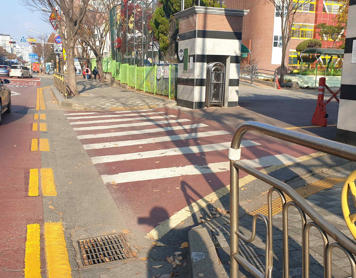지난해 11월 고양시는 일산서구 문촌초등학교 정문 앞 경사로를 보행자 중심으로 개선했다.