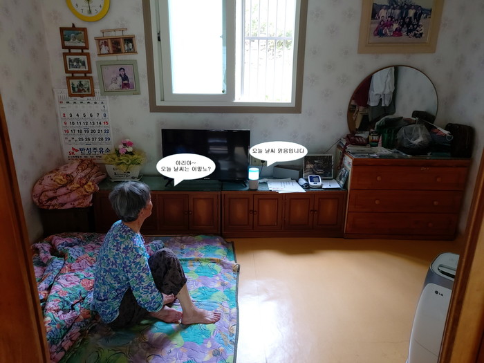 AI스피커는 “살려줘”라는 단어를 인식해 지역센터와 관제센터, ADT캡스 등에 메시지를 송신하여 119긴급출동이 가능하도록 연계한다. 특히, 스피커와의 대화를 통하여 정서적인 교감은 물론 내부 프로그램으로 탑재된 치매예방프로그램은 인지능력 향상에도 도움을 주고 있다.