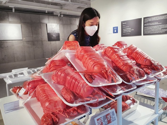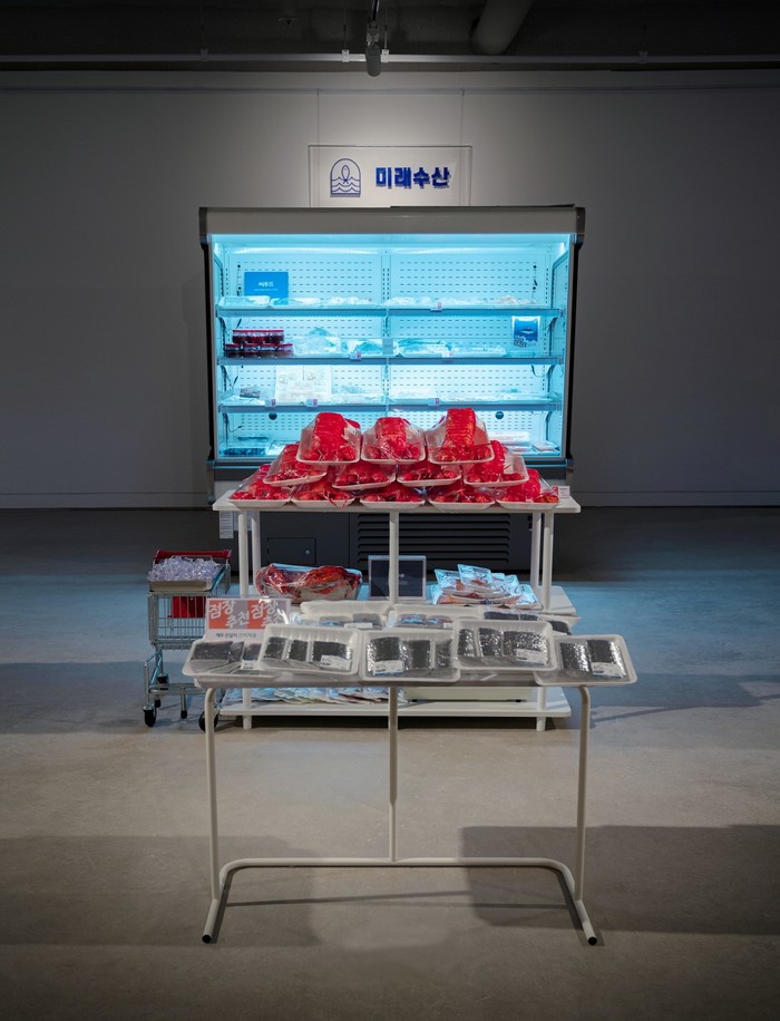 그래서 플라스틱의 위험성을 관객이 현실적으로 직시할 수 있도록 수산물을 플라스틱으로 만들고 마트의 수산 매대를 실물 크기 그대로 복제하여 연출하였다.