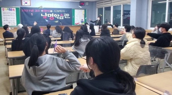 (사)합천군교육발전위원회(이사장 문준희 합천군수)는 28일 남명학습관 소회의실에서 고3 학사생과 강사 등 35명이 참석한 가운데 2021년 남명학습관 고3학년 종강식을 개최했다. 이날 종강식은 문준희 이사장을 비롯한 강사의 격려사, 고3 수험생의 송사 및 고2 후배 학사생의 답사, 수능 대박을 기원하는 마음을 담은 꿈종이비행기 날리기 행사 등을 통해 그동안 열심히 공부해온 수험생들을 격려하고 응원하는 시간을 가졌다.