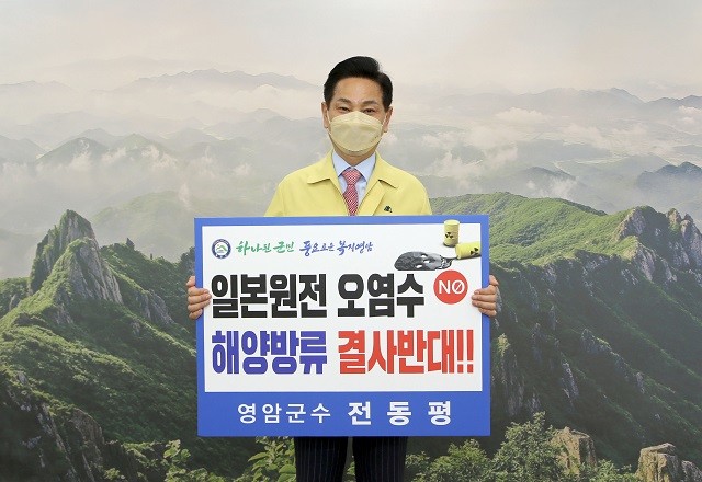 | ▲ 전동평 영암군수, 일본원전 오염수 해양방류 결사 반대 첼린지 동참 / 사진=영암군 제공 |
