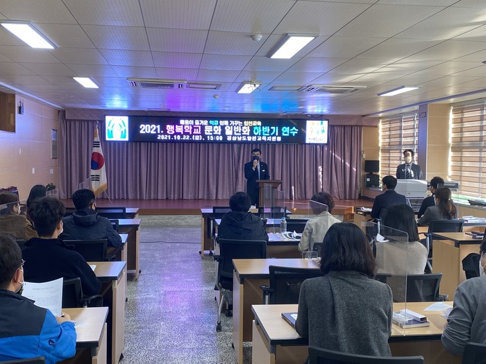 합천교육지원청(교육장 정종화)은 지난 22일 초등학교 교원들을 대상으로 합천교육지원청 3층 대회의실에서 2021 합천 행복학교 문화 일반화 하반기 네트워크 연수를 개최하였다.