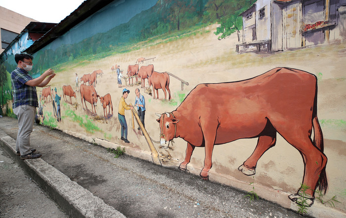 벽화는 당시 소가 거래되던 모습과 인근 상가들의 모습을 떠올릴 수 있도록 그려졌다.